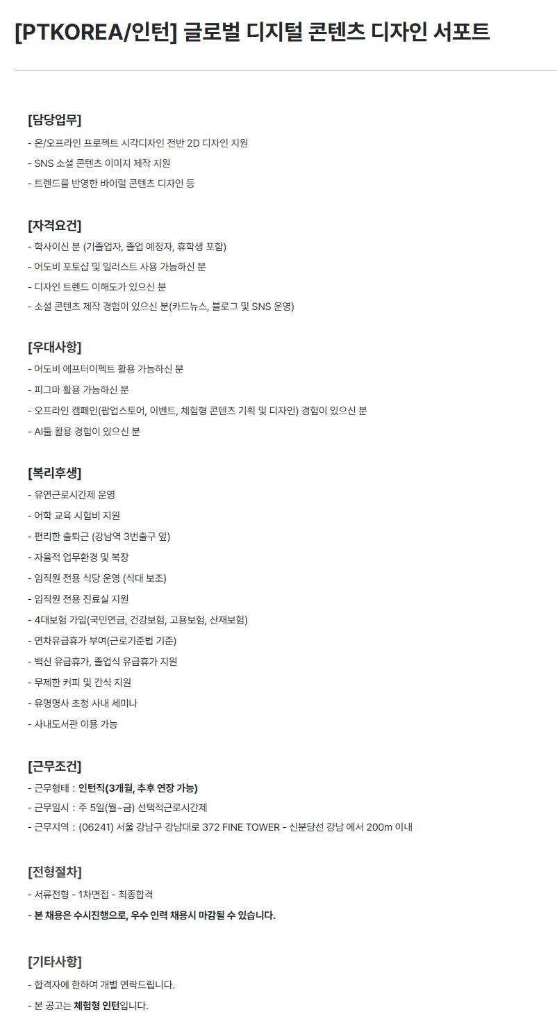 [PTKOREA] 글로벌 디지털 콘텐츠 디자인 서포트 (인턴)