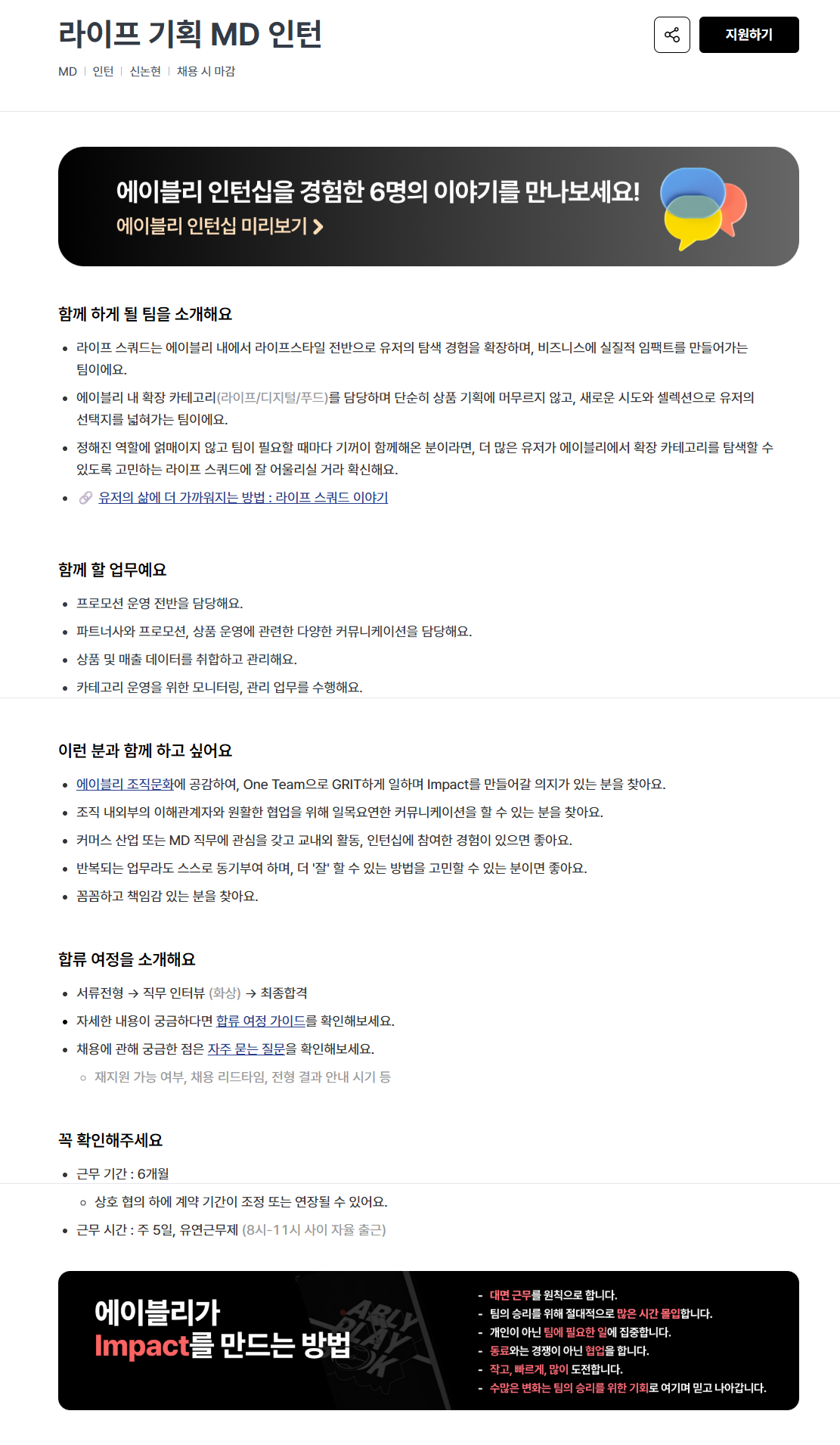 [에이블리코퍼레이션] 라이프 기획 MD 인턴
