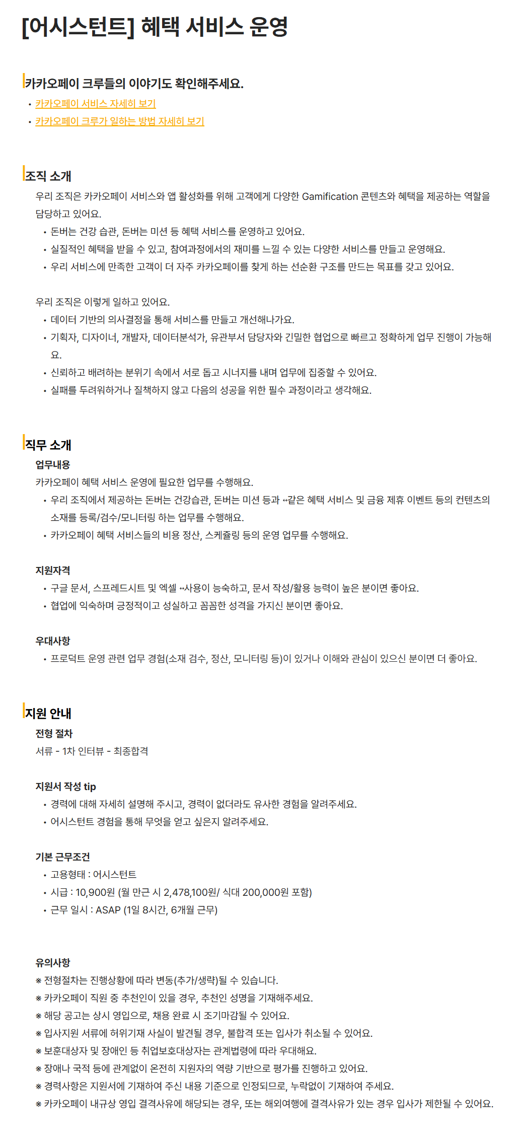 [카카오페이] [어시스턴트] 혜택 서비스 운영