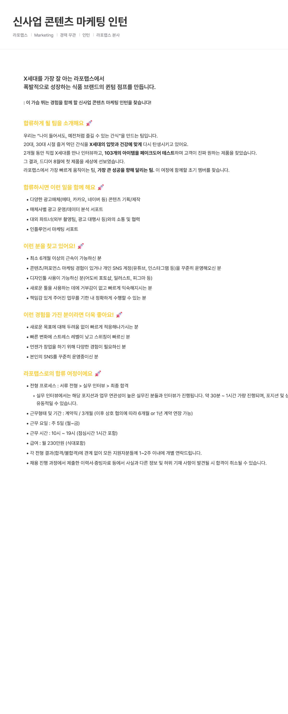 [라포랩스/퀸잇] 신사업 콘텐츠 마케팅 인턴