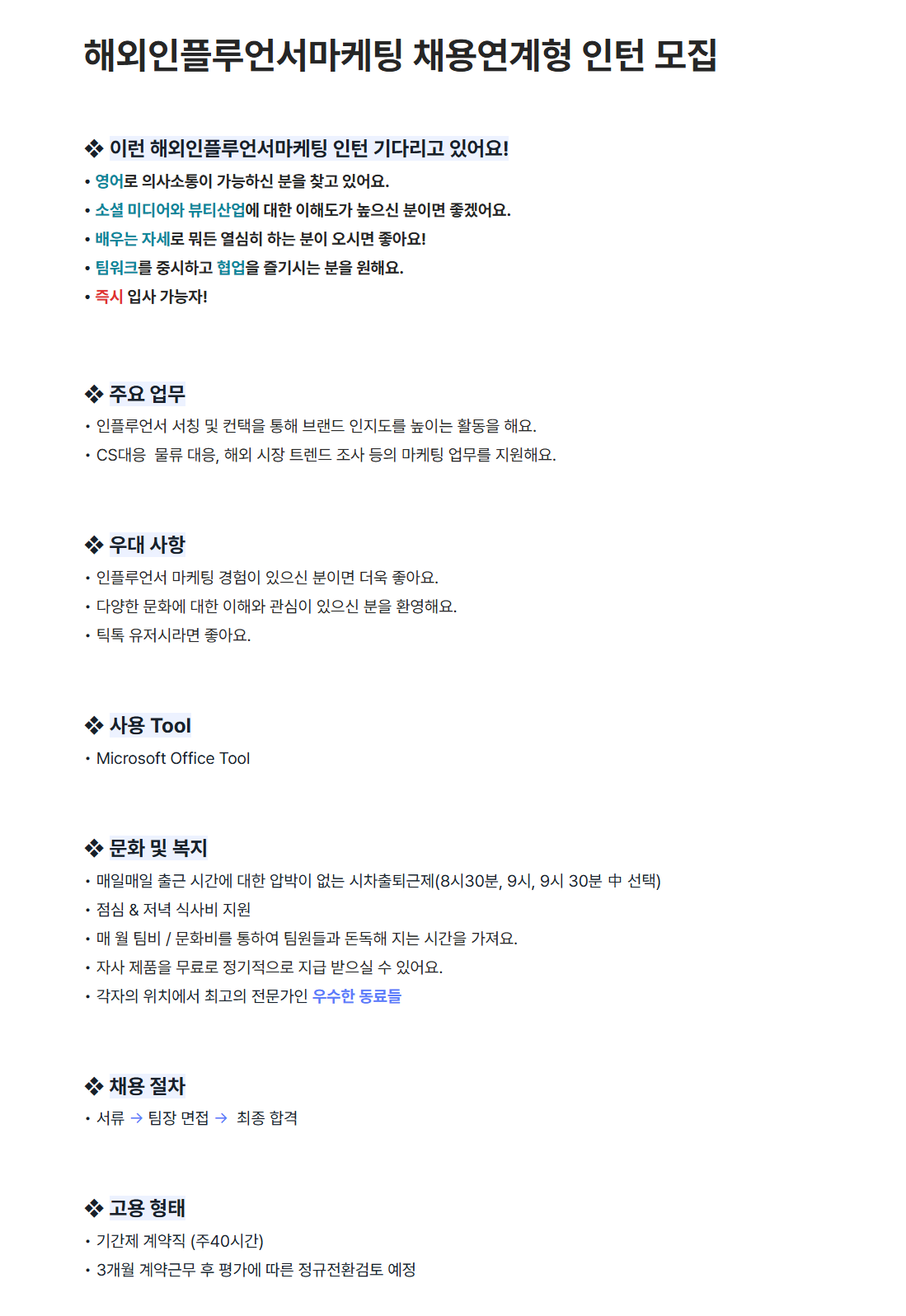 • 인플루언서 마케팅 경험이 있으신 분이면 더욱 좋아요.
