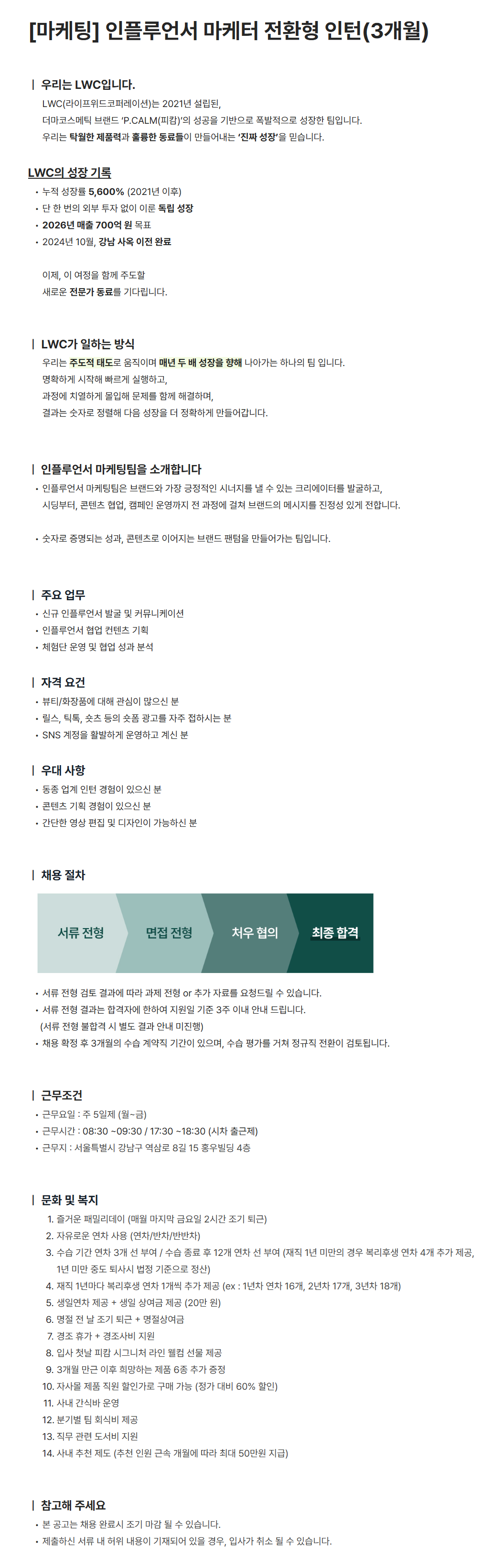 [(주)라이프위드코퍼레이션] [마케팅] 인플루언서 마케터 전환형 인턴(3개월)