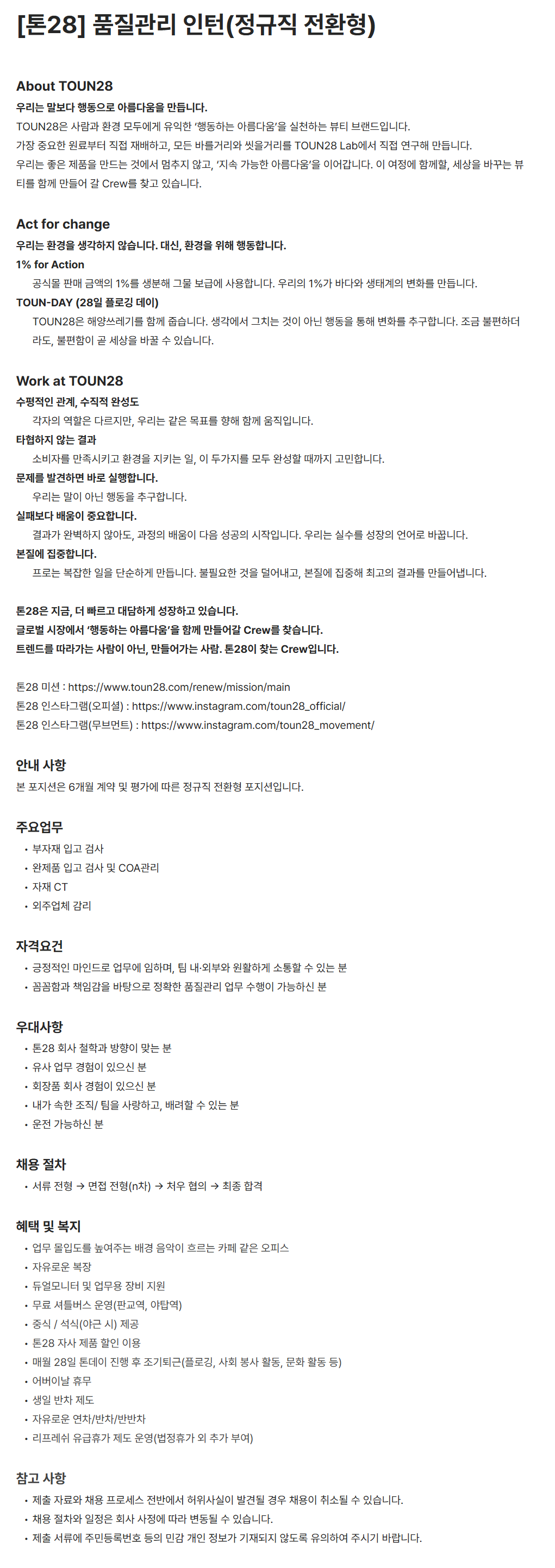 - 꼼꼼함과 책임감을 바탕으로 정확한 품질관리 업무 수행이 가능하신 분