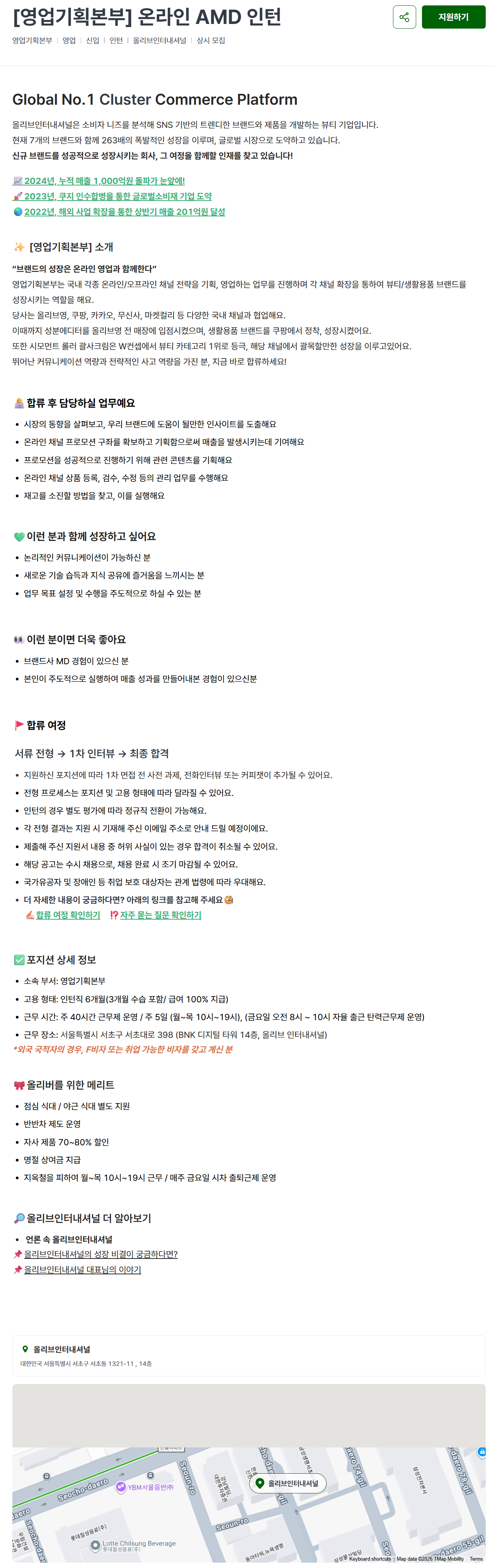 [올리브인터내셔널] [영업기획본부] 온라인 AMD 인턴