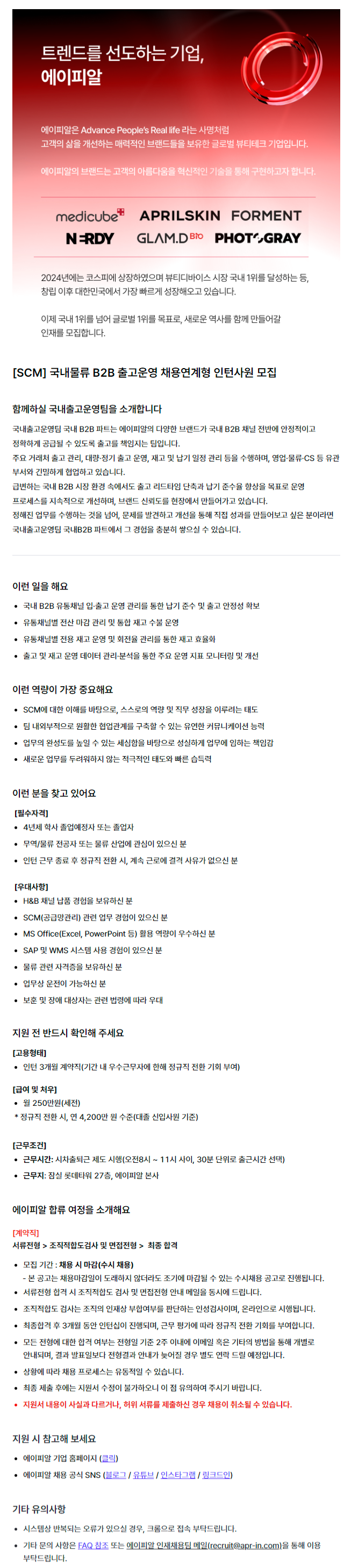 [SCM] 국내물류 B2B 출고운영 채용연계형 인턴사원 모집