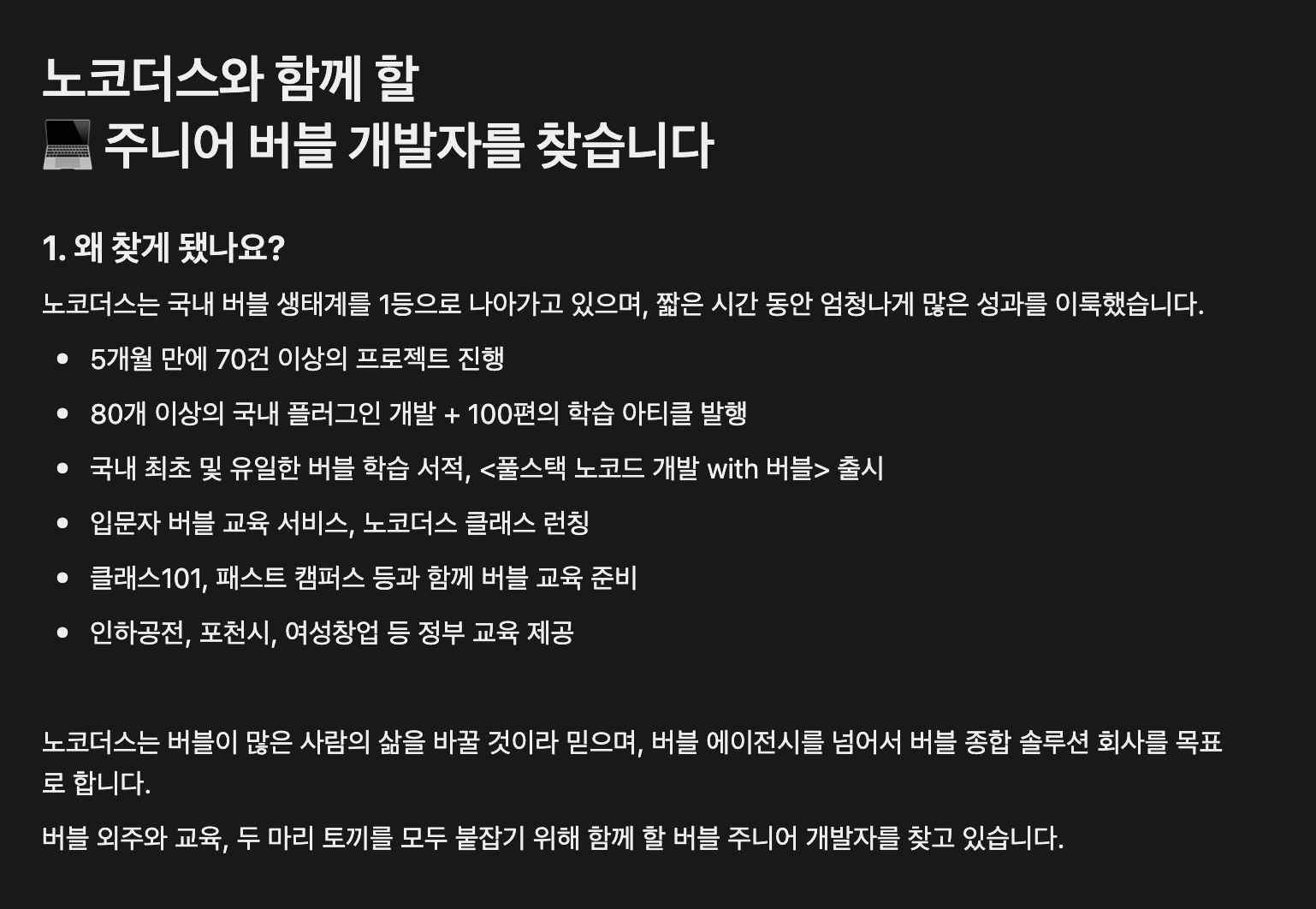 [노코더스] 노코드 버블(bubble.io) 개발자 인턴 채용