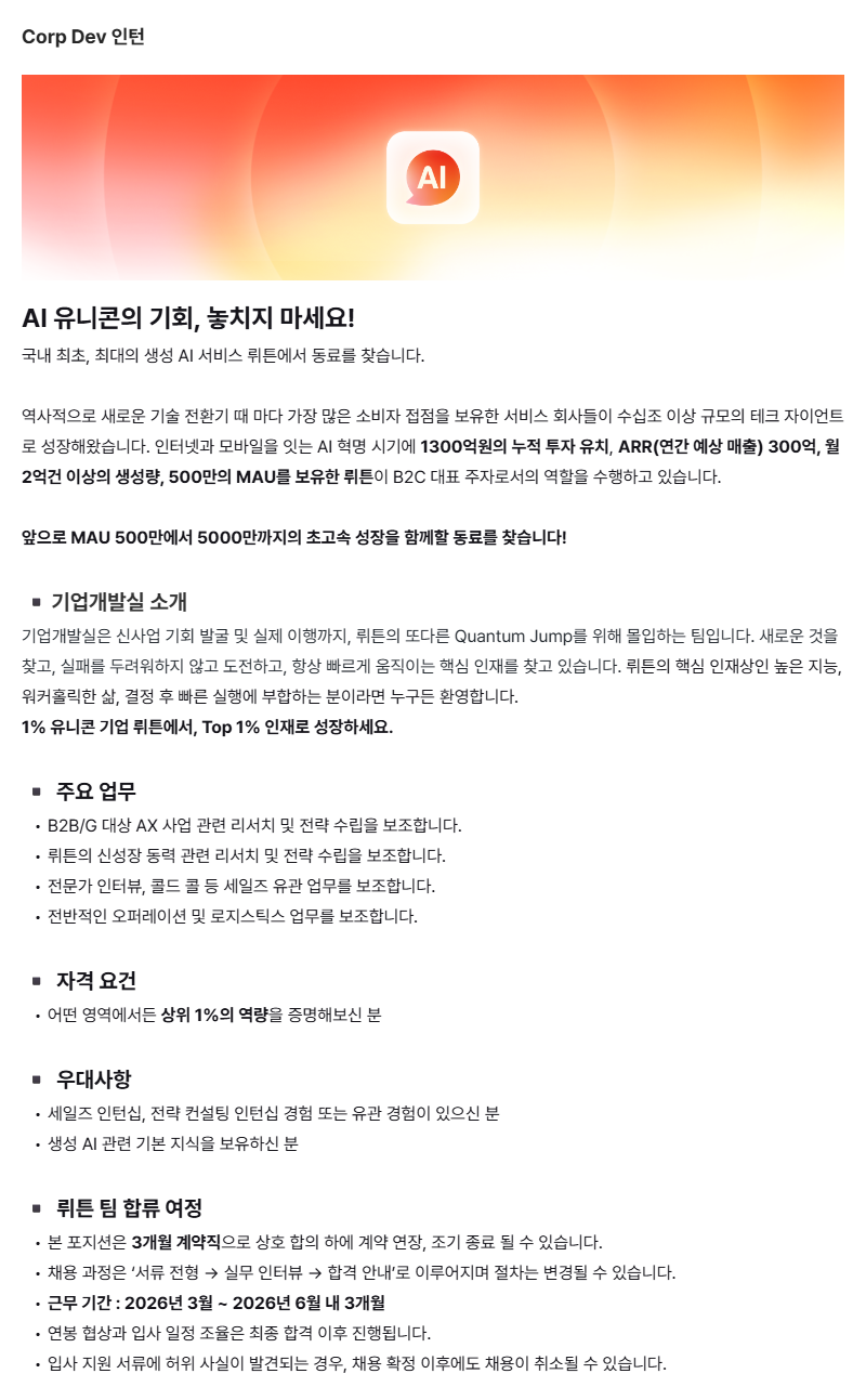 [뤼튼테크놀로지스] Corp Dev 인턴