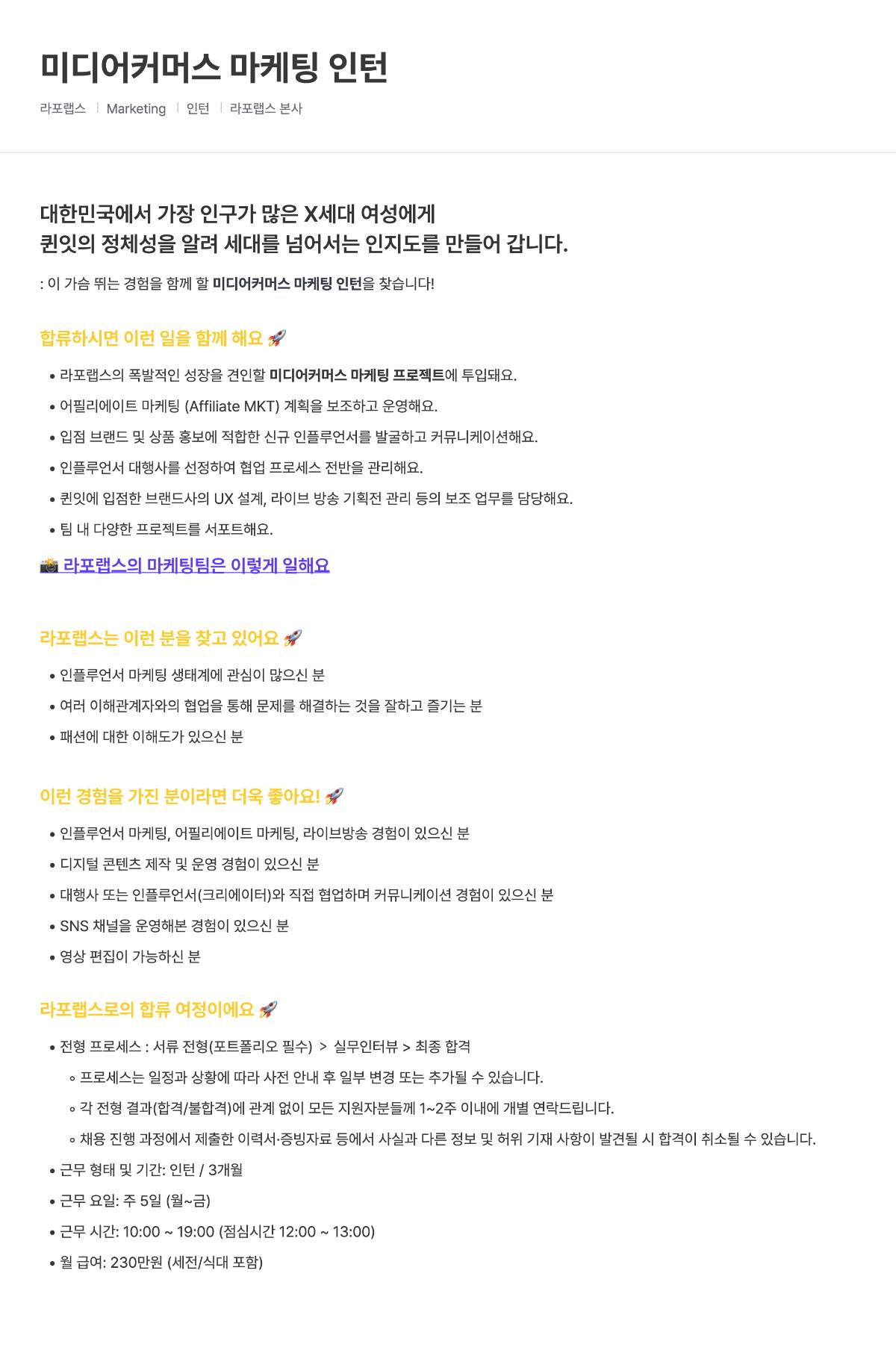 [라포랩스/퀸잇] 미디어커머스 마케팅 인턴