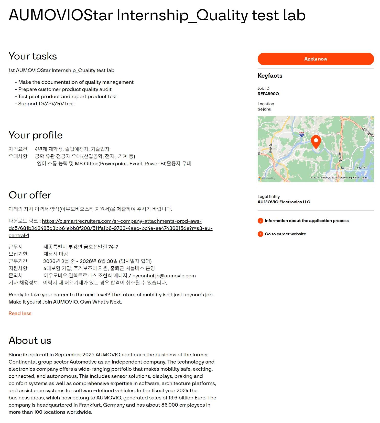 [아우모비오일렉트로닉스] AUMOVIOStar Internship_Quality test lab