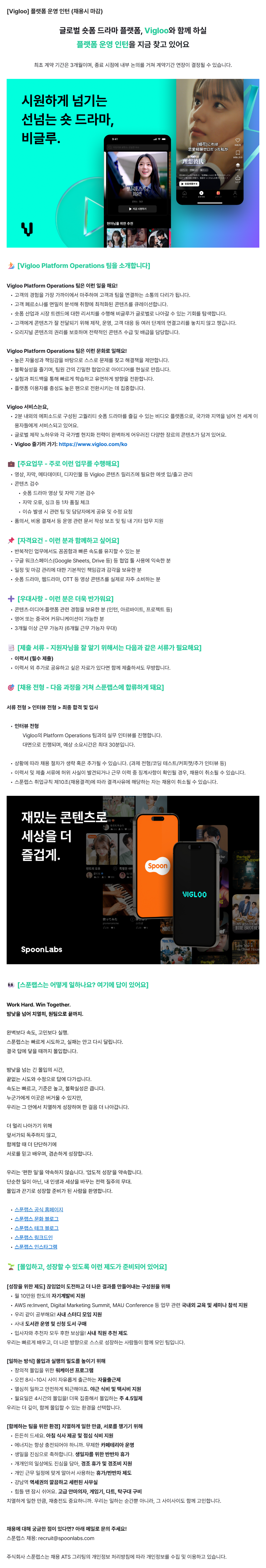 [Vigloo] 플랫폼 운영 인턴 (채용시 마감)