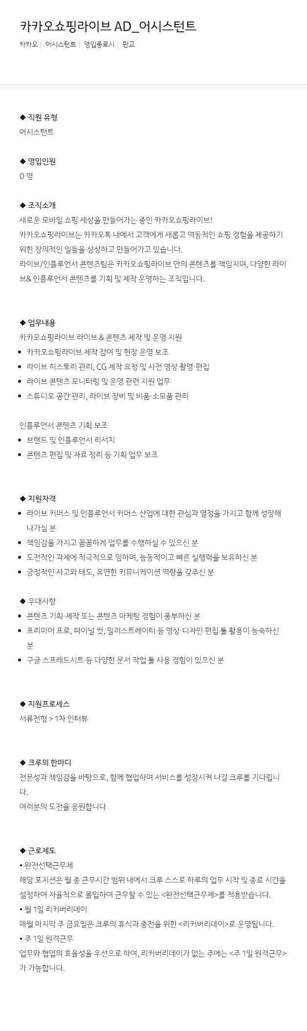 [카카오] 카카오쇼핑라이브 AD_어시스턴트