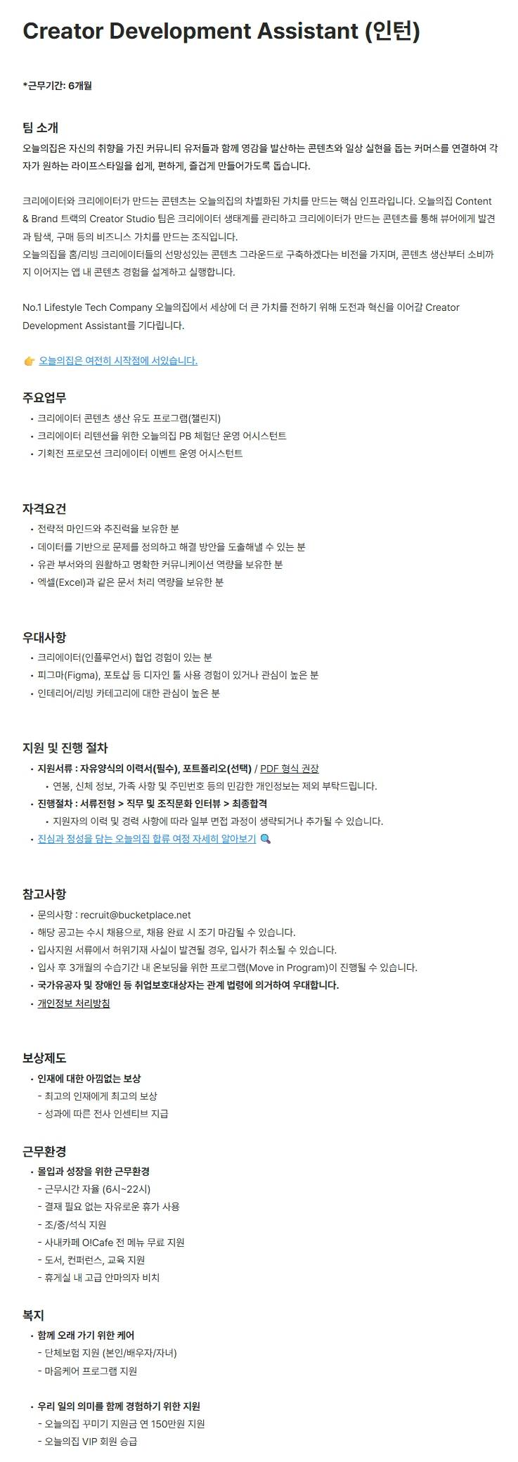 [버킷플레이스] Creator Development Assistant (인턴)