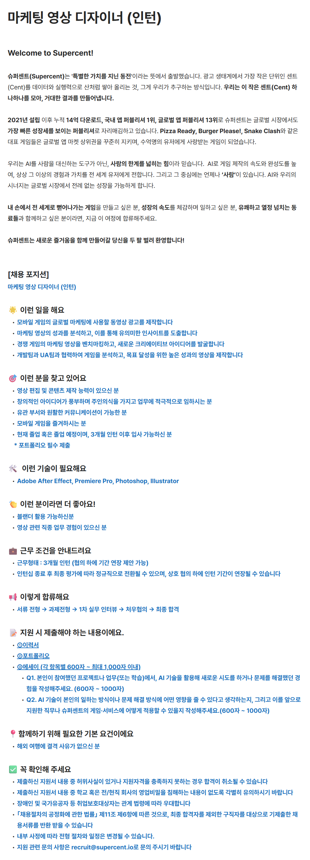 [슈퍼센트] 마케팅 영상 디자이너 (인턴)