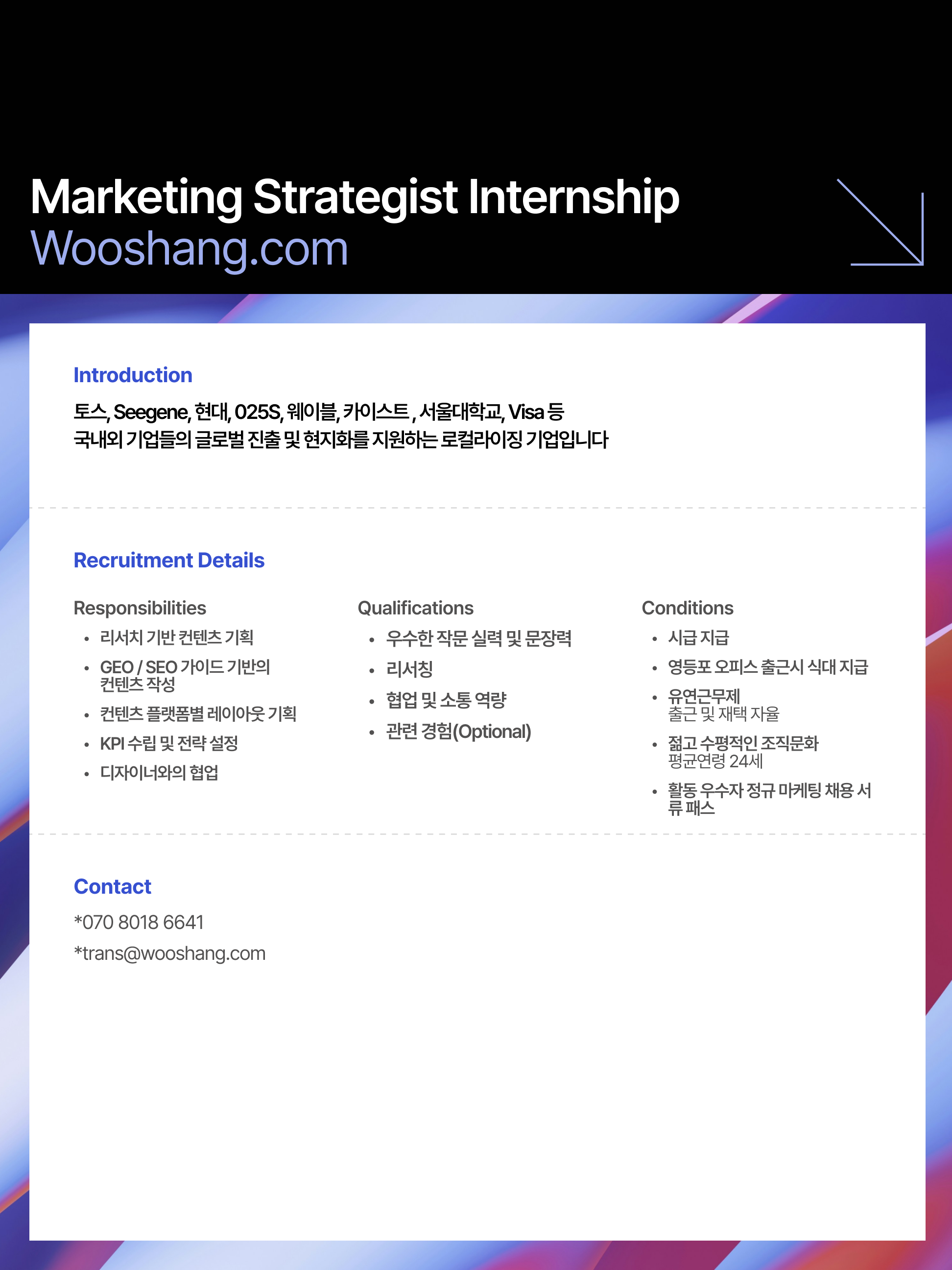 외국계 로컬라이징 기업 마케팅 Part 인턴 모집