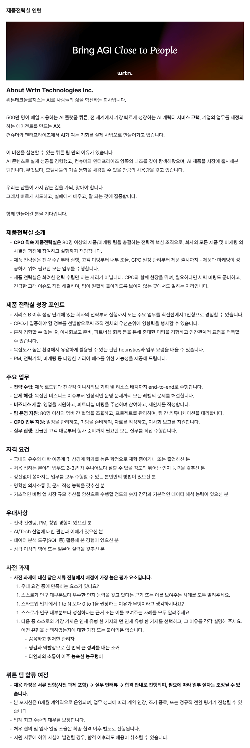 제품전략실 인턴