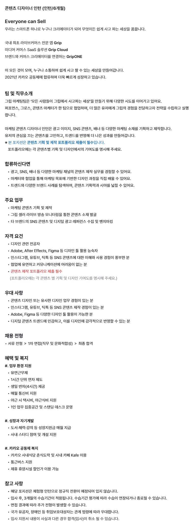 [그립컴퍼니] 콘텐츠 디자이너 (인턴 / 6개월)