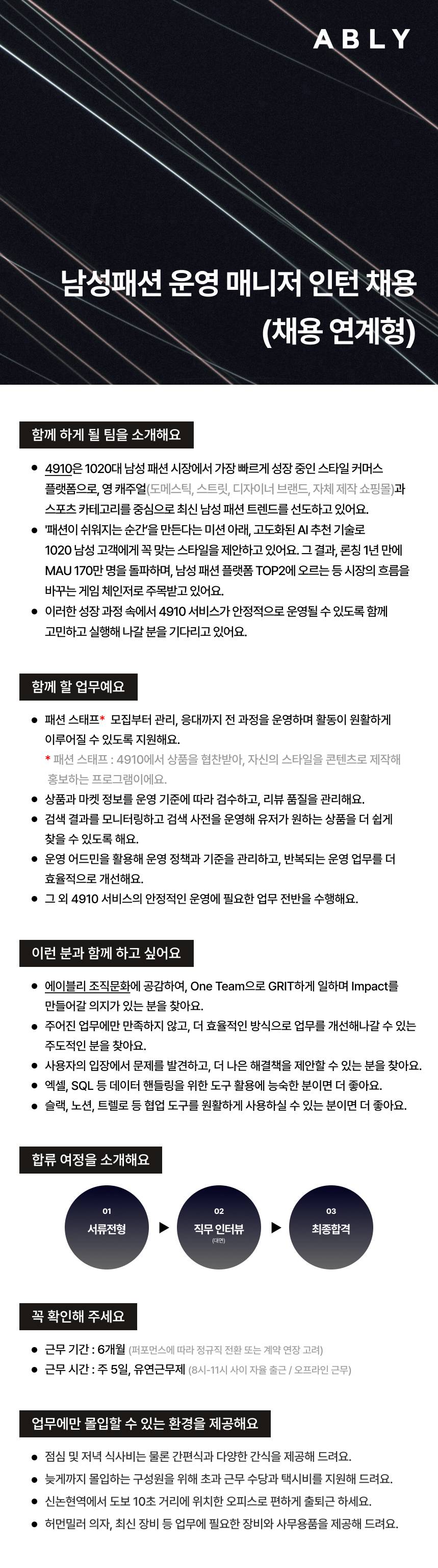 남성패션 운영 매니저 인턴 (채용연계형)