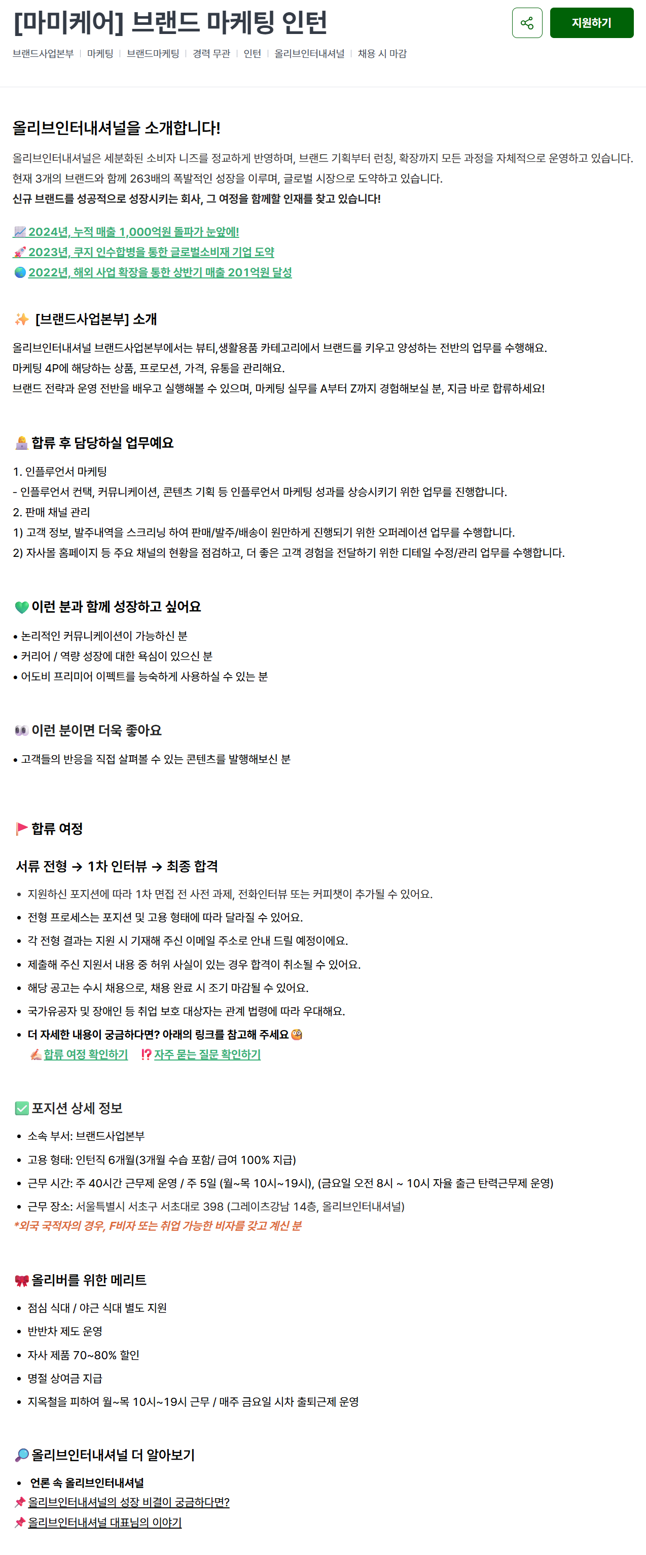 [올리브인터내셔널] [마미케어] 브랜드 마케팅 인턴
