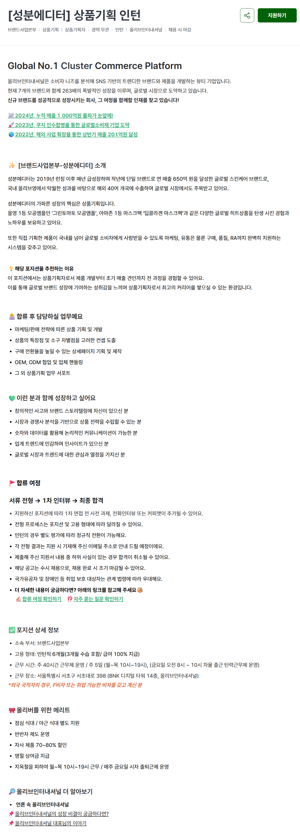 [올리브인터내셔널] [성분에디터] 상품기획 인턴