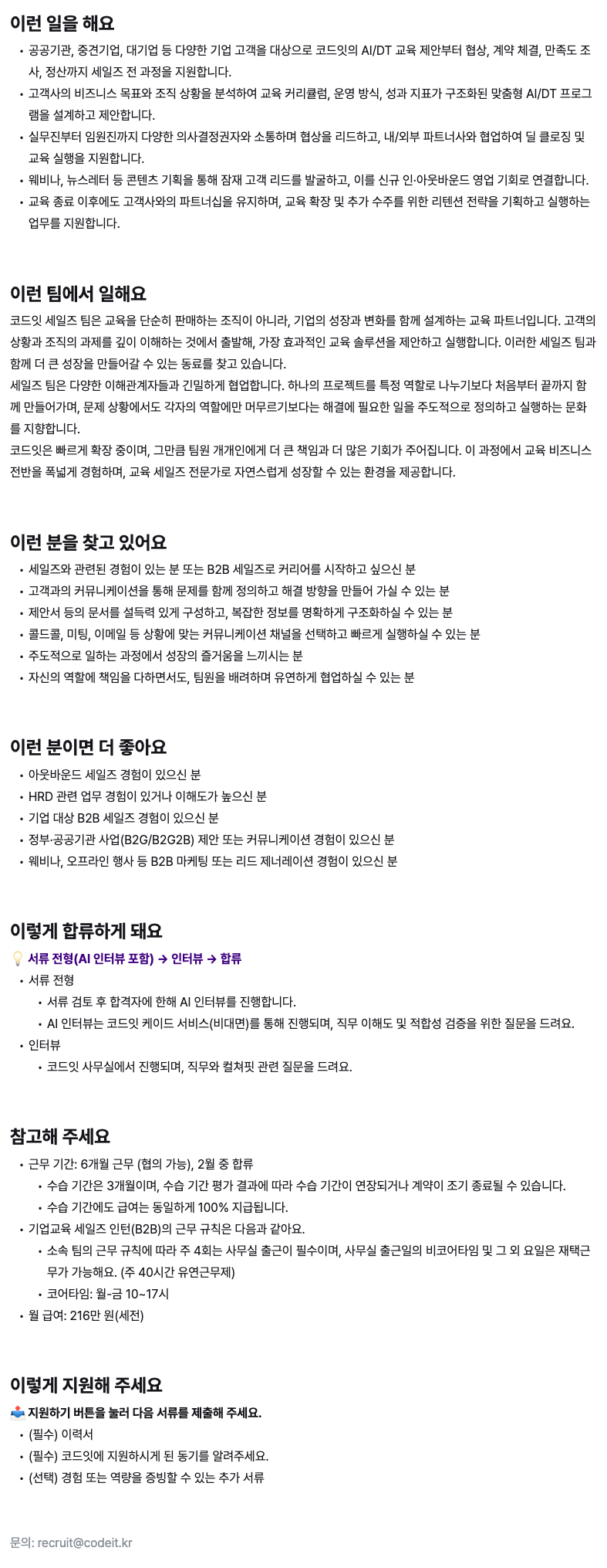 세일즈 인턴(B2B)