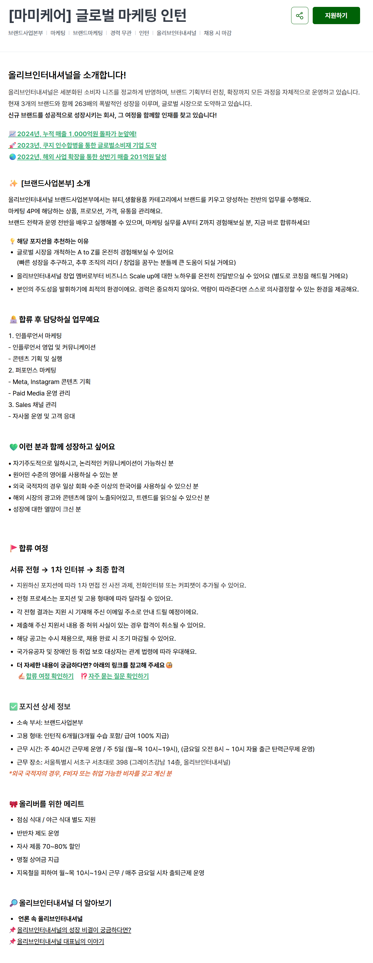 [올리브인터내셔널] [마미케어] 글로벌 마케팅 인턴
