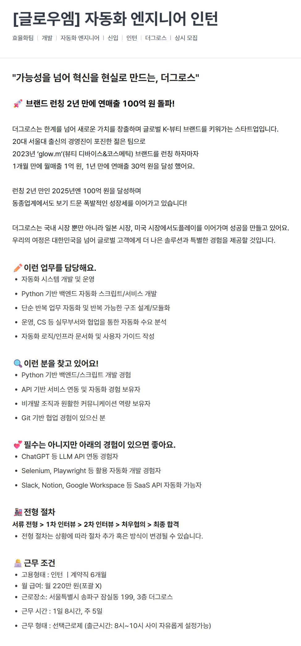 [더그로스] [글로우엠] 자동화 엔지니어 인턴