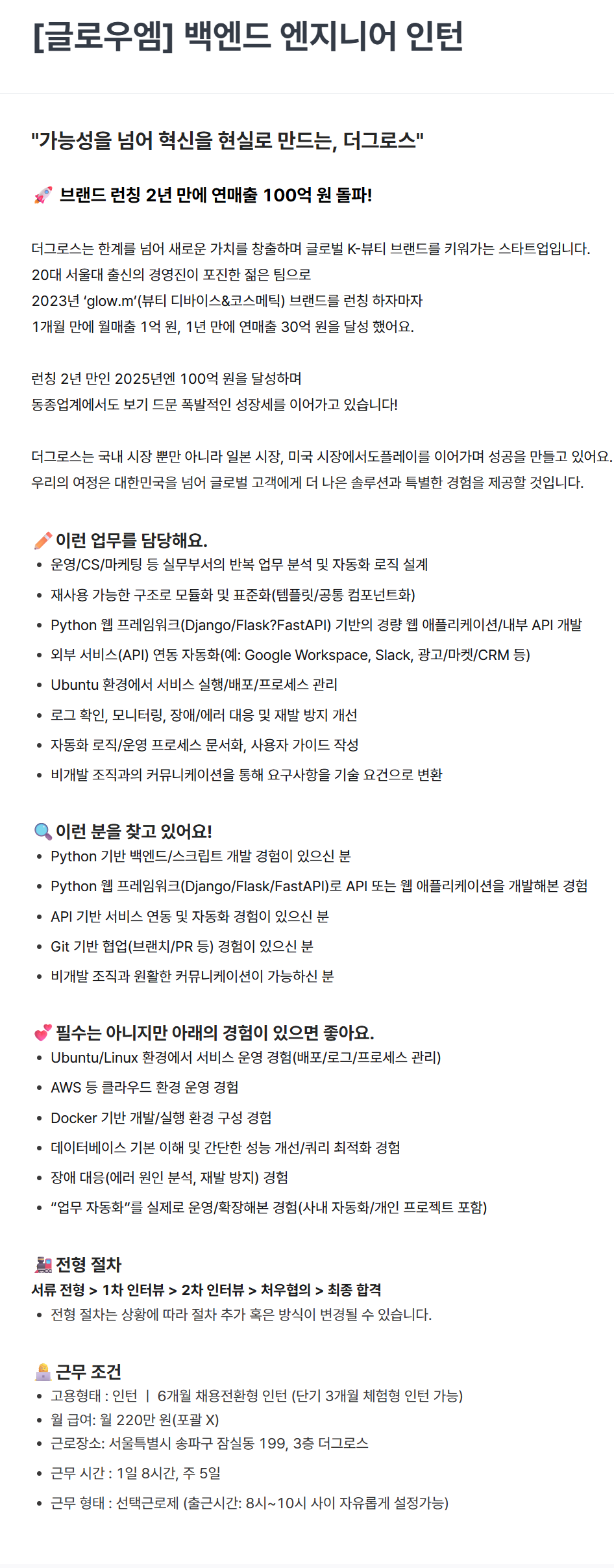 [더그로스] [글로우엠] 백엔드 엔지니어 인턴