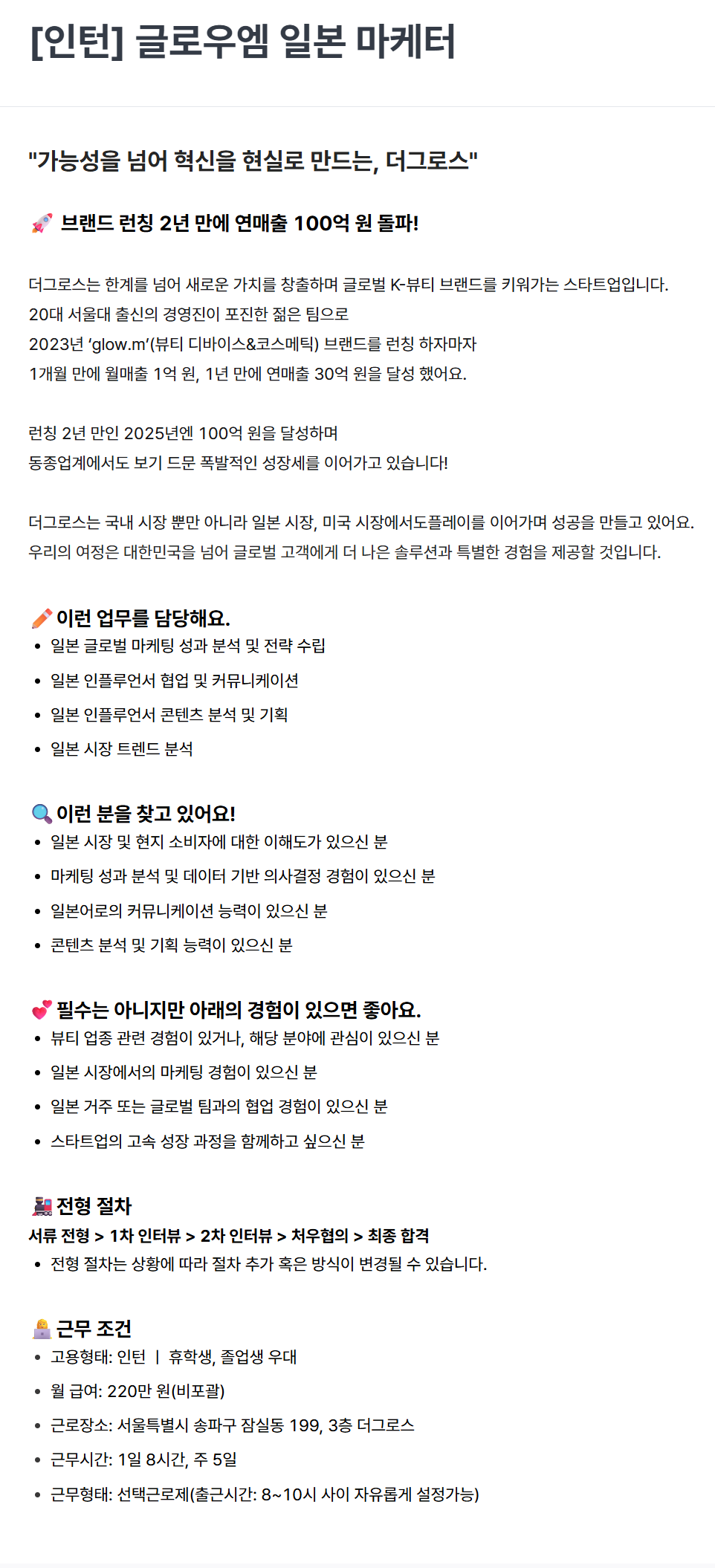 [더그로스] [인턴] 글로우엠 일본 마케터