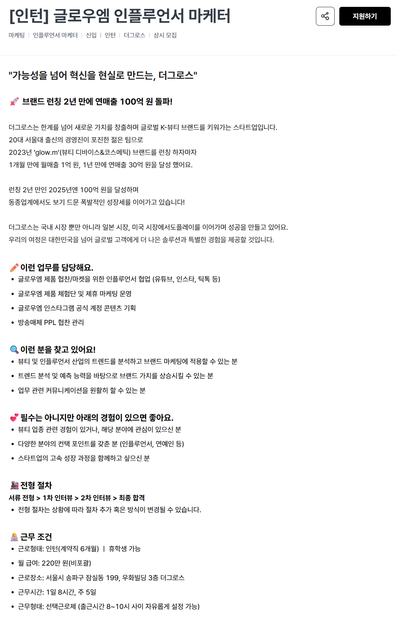 [더그로스] [인턴] 글로우엠 인플루언서 마케터