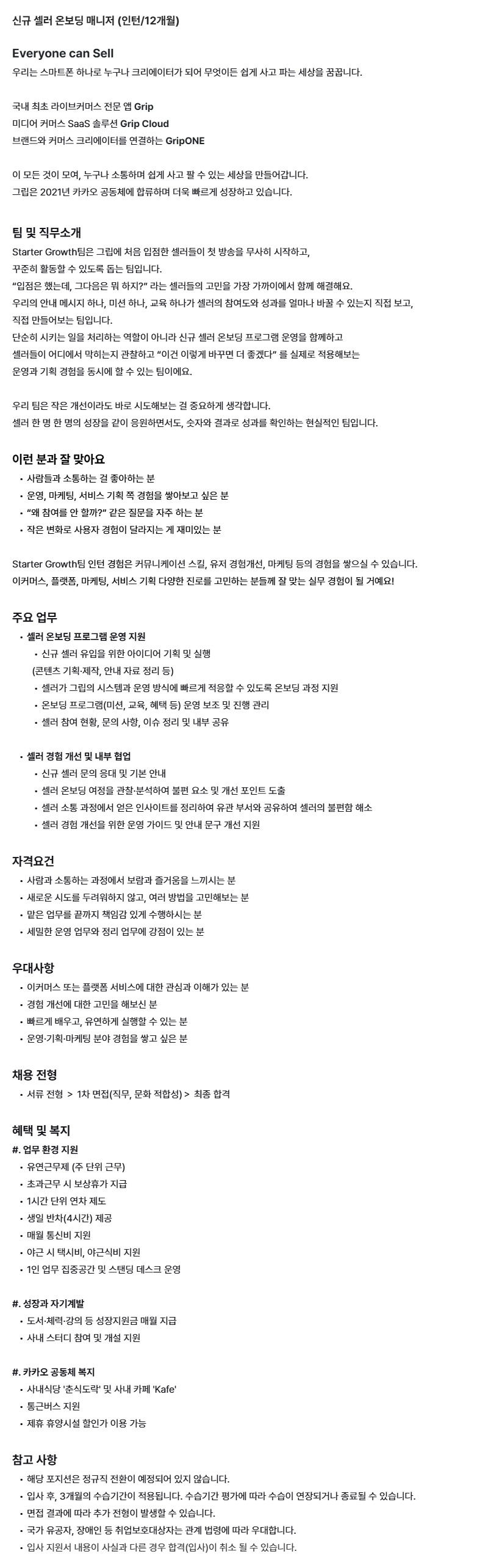 [그립컴퍼니] 신규 셀러 온보딩 매니저 (인턴/12개월)