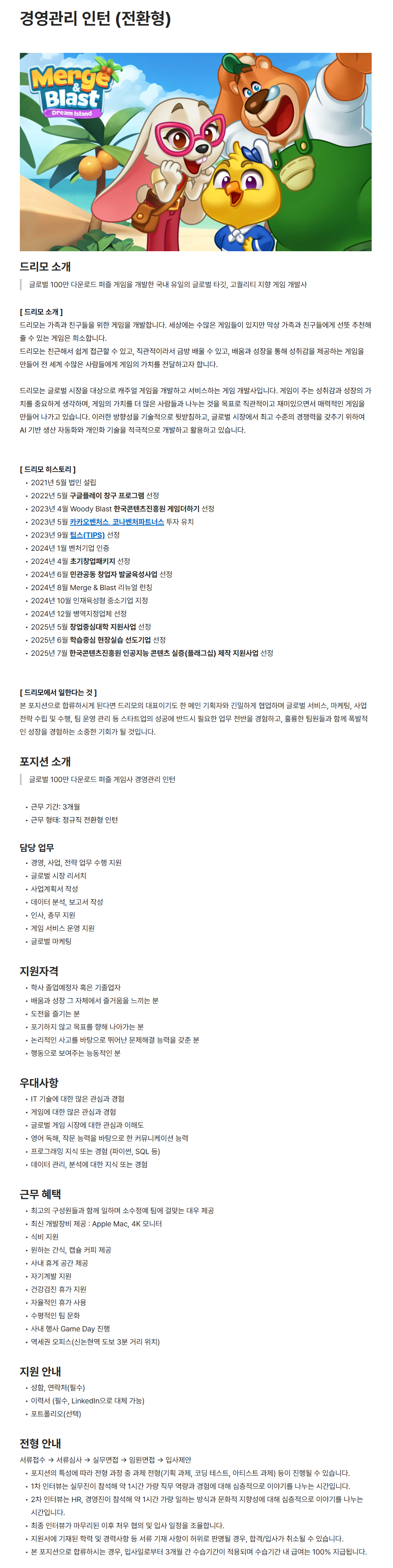 [드리모] 경영관리 인턴 (전환형)