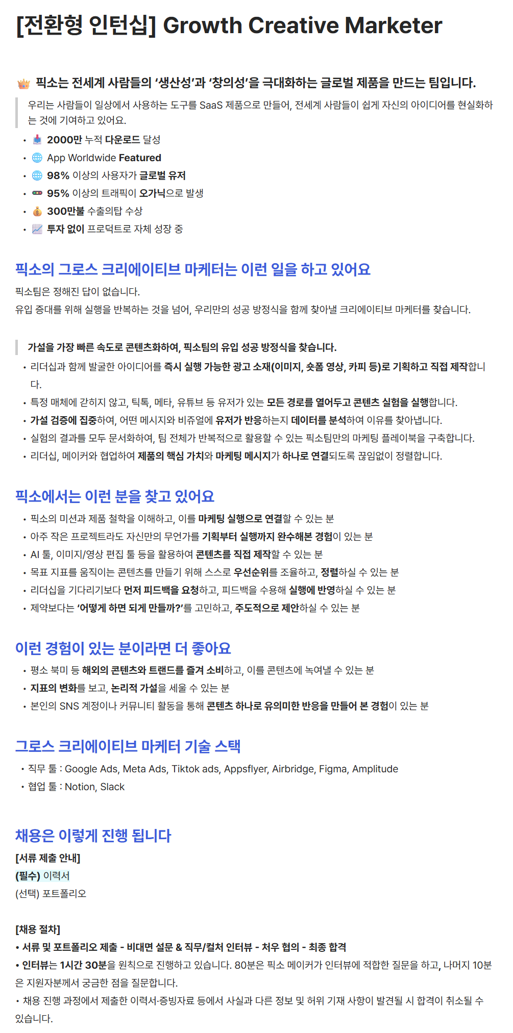 [픽소] [전환형 인턴십] Growth Creative Marketer