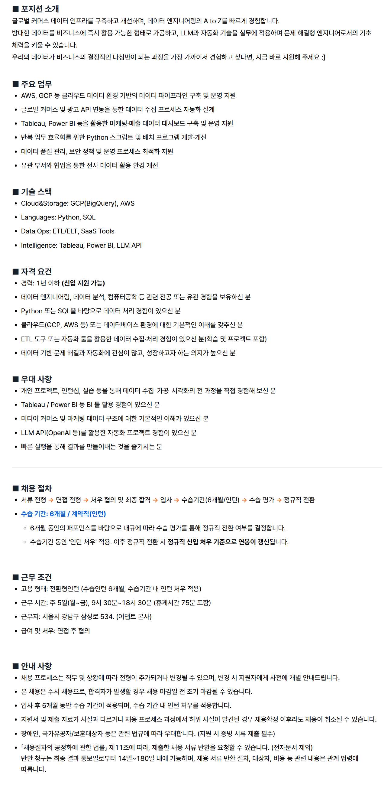 [어댑트] [전환형인턴] 데이터 엔지니어