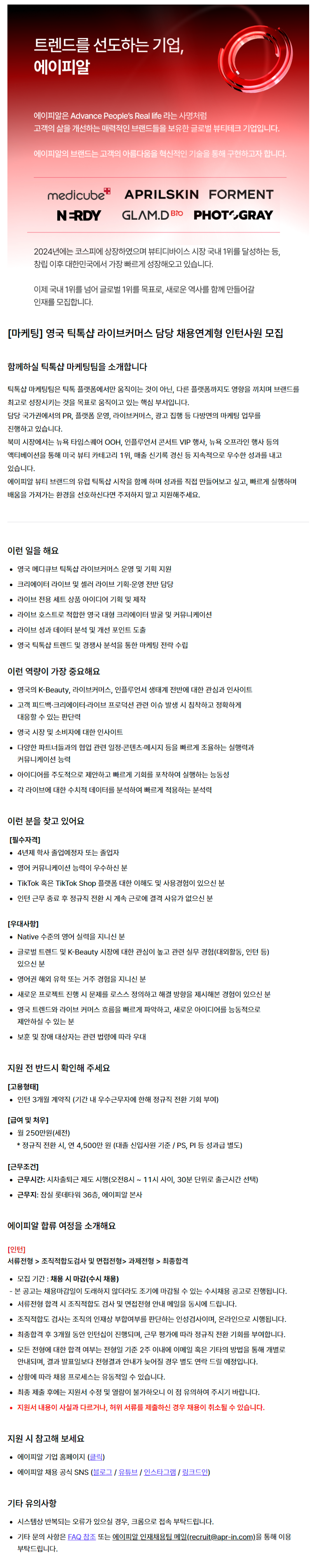 [마케팅] 영국 틱톡샵 라이브커머스 담당 채용연계형 인턴사원 모집