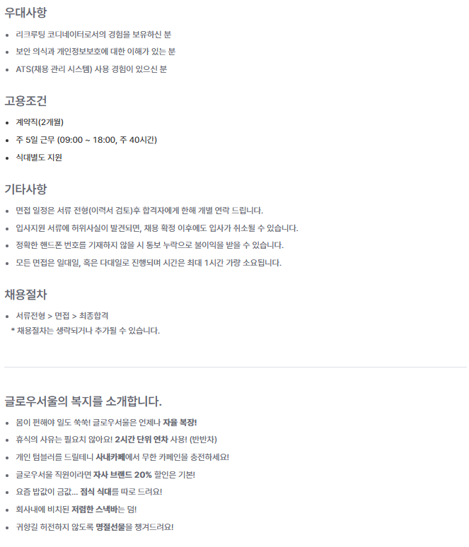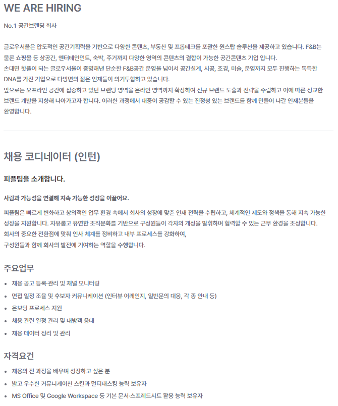[글로우서울 / 본사] 피플팀 코디네이터(인턴) 채용