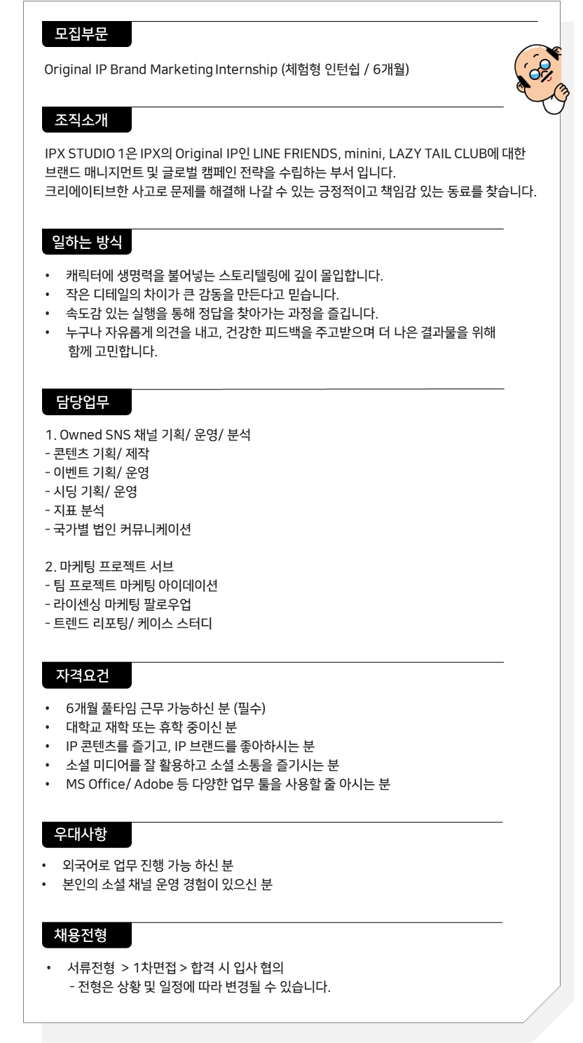 [IPX(라인프렌즈)] Original IP Brand Marketing Internship (체험형)
