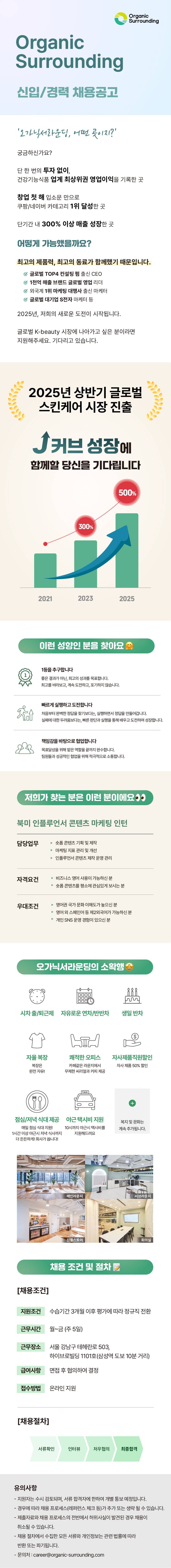 (주)오가닉서라운딩 북미(해외) 인플루언서 콘텐츠 마케팅 전환형 인턴 채용