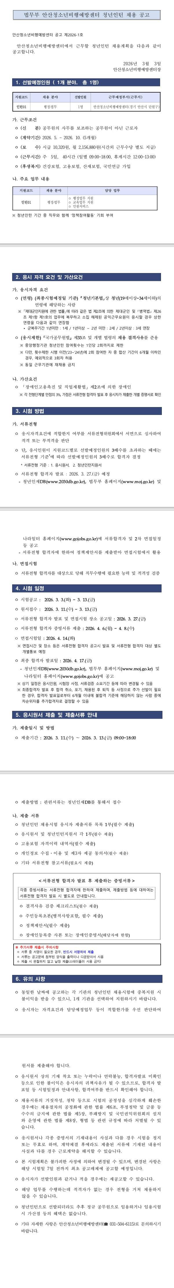 [안산청소년비행예방센터] 법무부 안산청소년비행예방센터 청년인턴 채용 공고