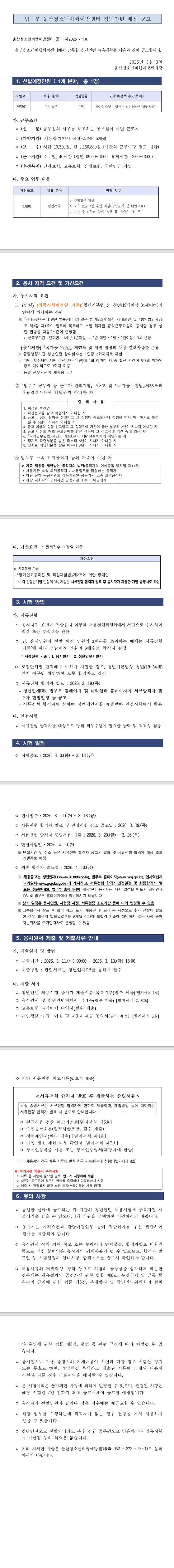 [울산청소년비행예방센터] 법무부 울산청소년비행예방센터 청년인턴 채용 공고