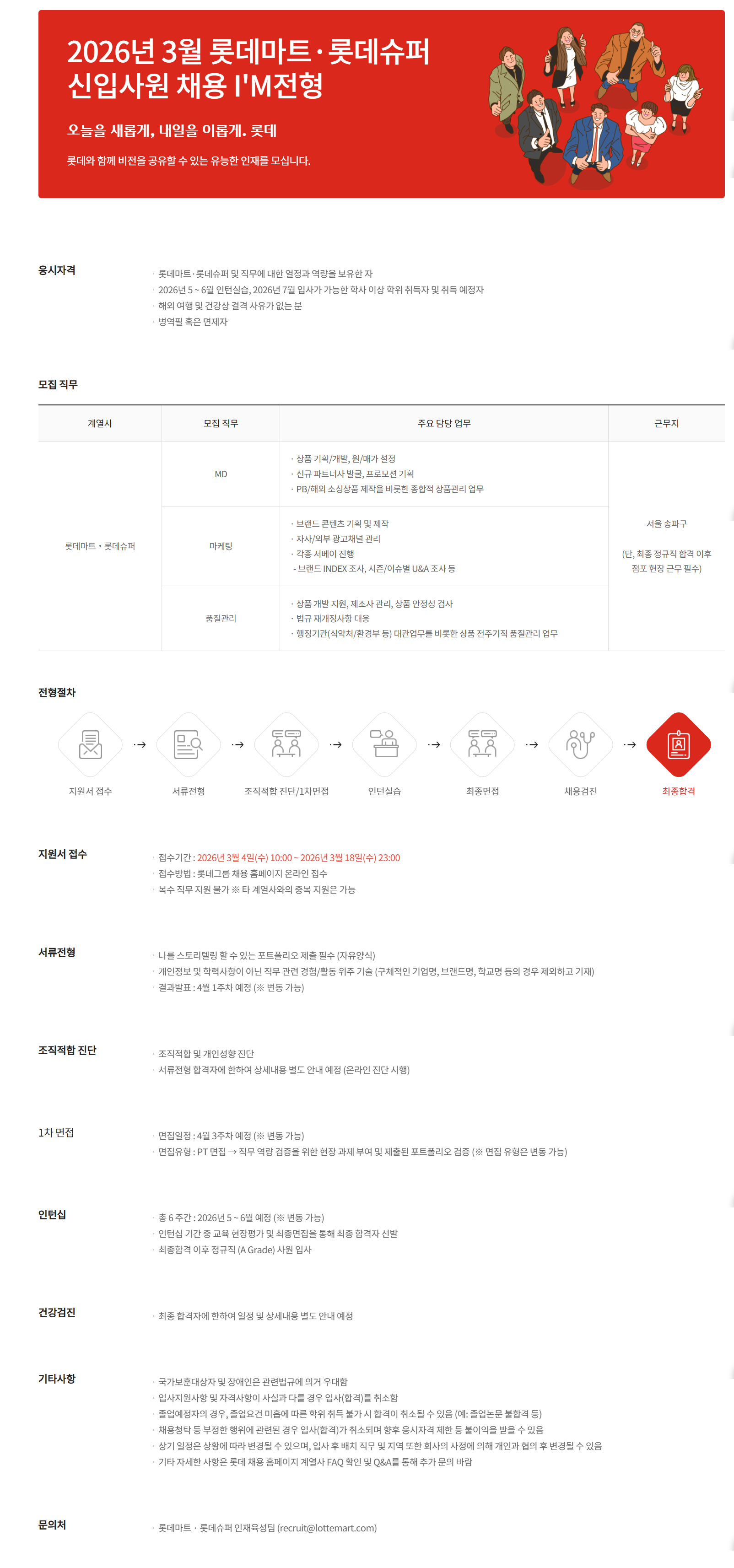 [롯데쇼핑] 2026년 3월 롯데마트·롯데슈퍼 신입사원 채용 I'M전형