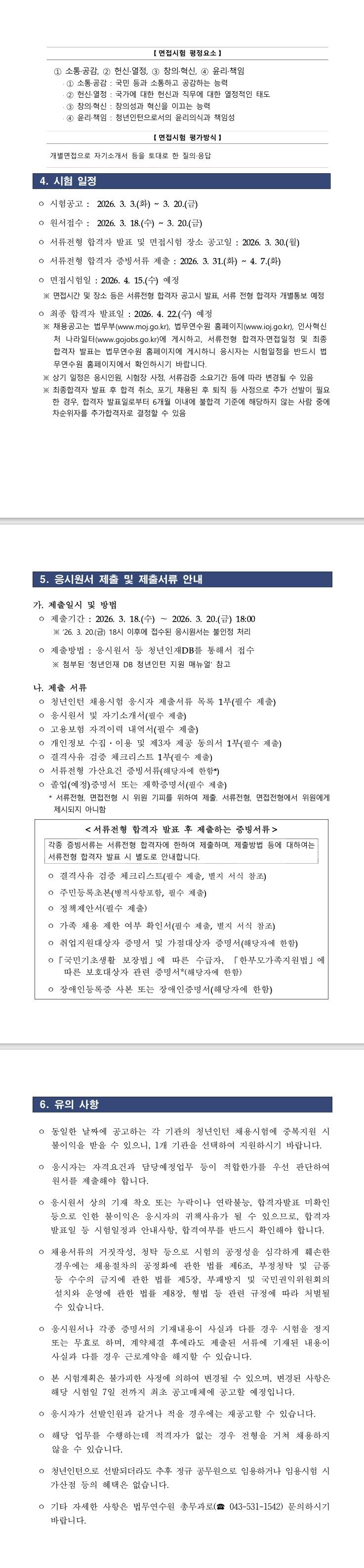 [법무연수원] 2026년 법무연수원 청년인턴 채용 공고