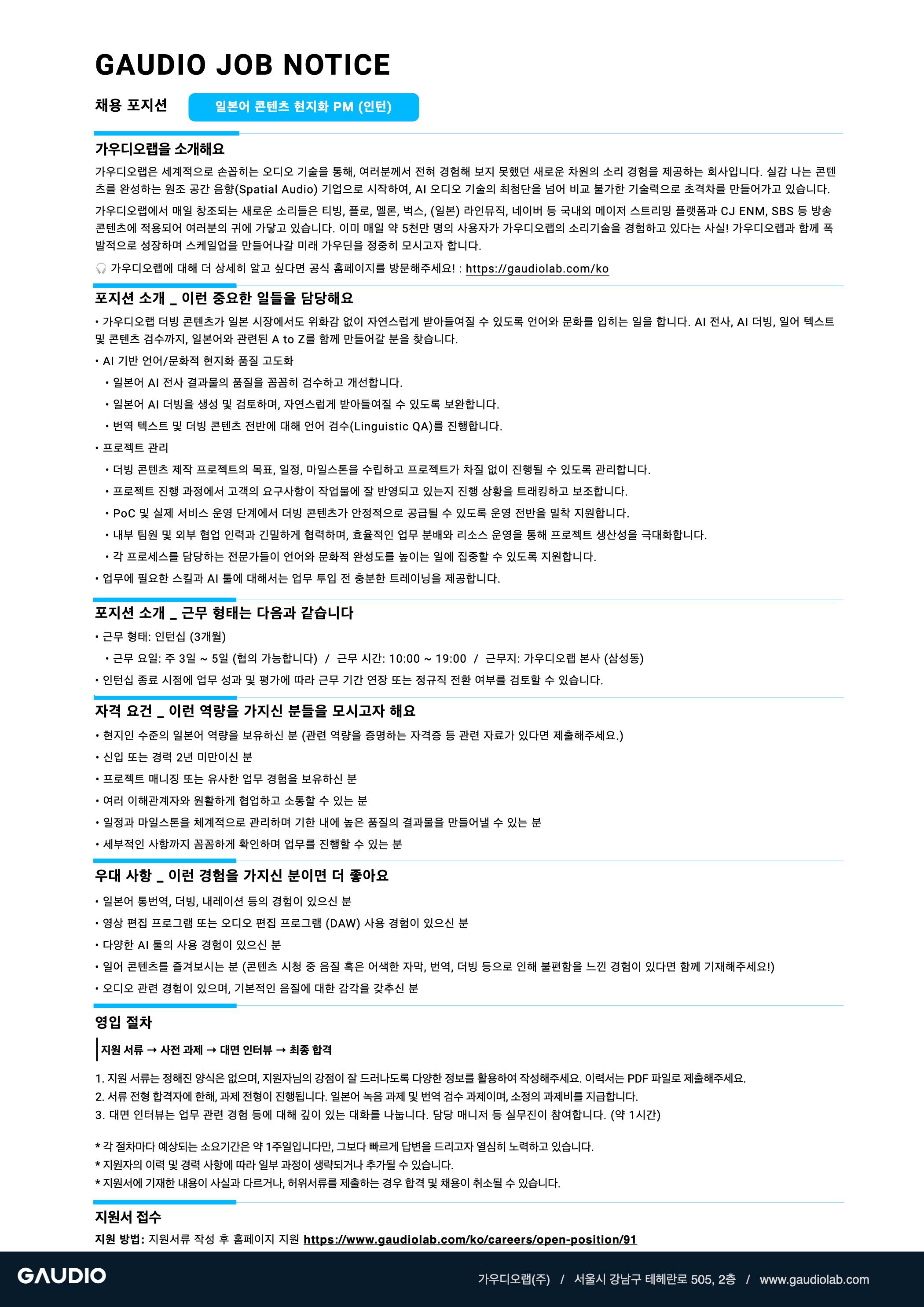 [가우디오랩] 일본어 콘텐츠 현지화 PM (인턴)