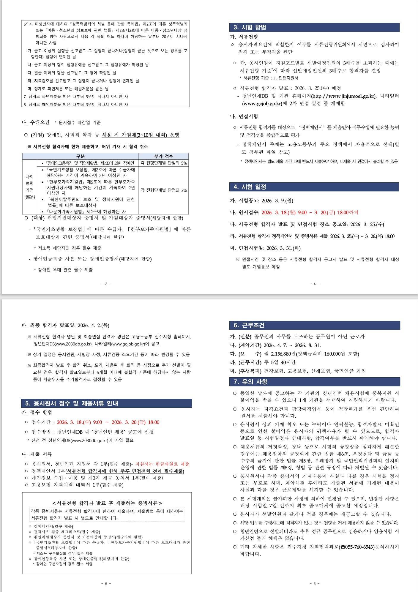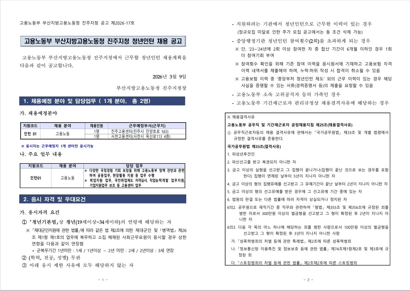 [진주고용노동지청] 2026년 상반기 진주지청 청년인턴 채용공고