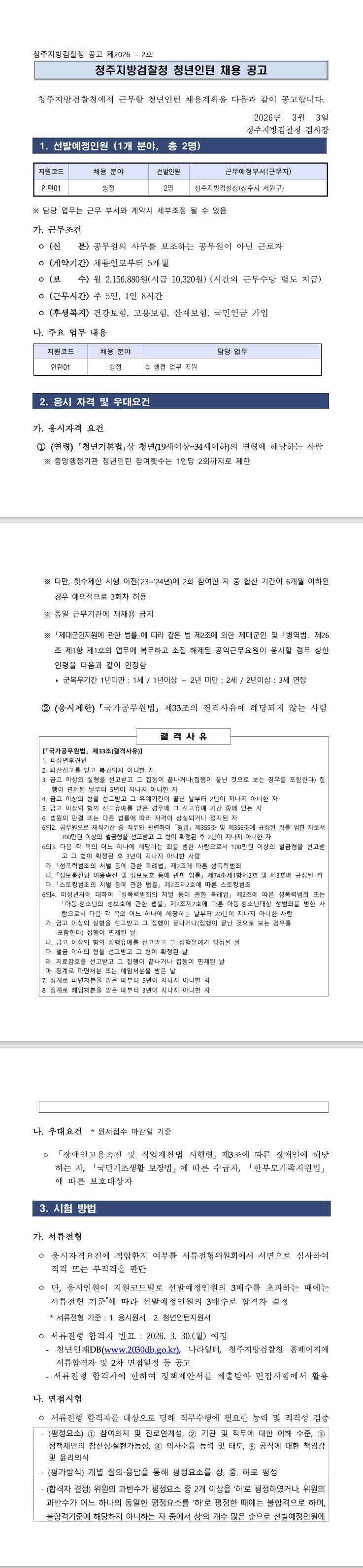 [청주지방검찰청] 청주지방검찰청 청년인턴 채용 공고