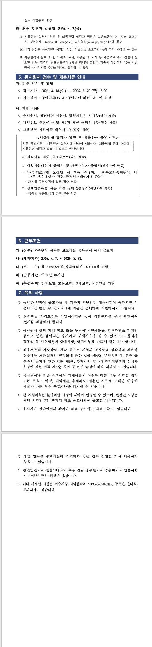 [여수고용노동지청] 고용노동부 여수지청 청년인턴 채용 공고