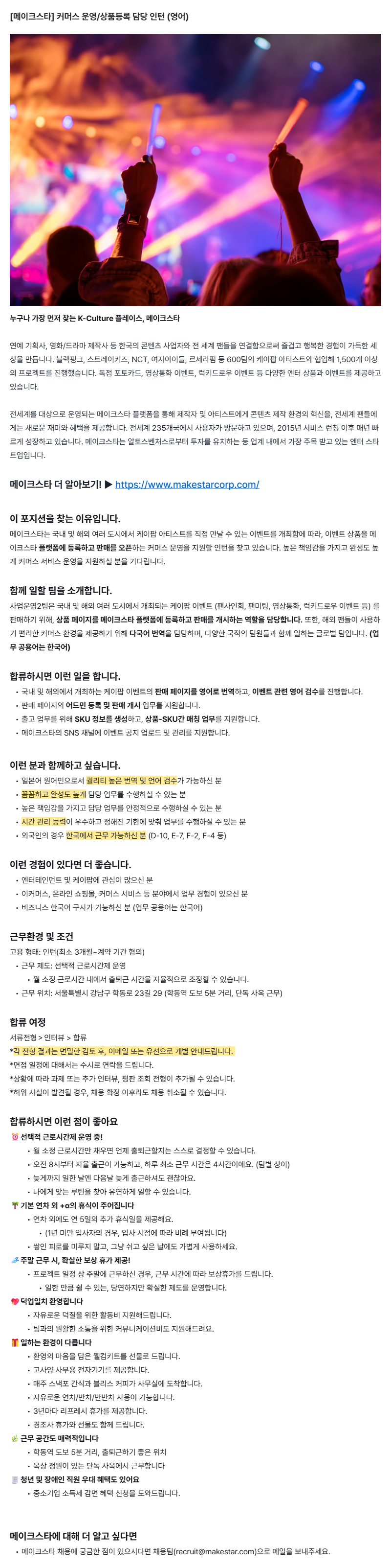 [메이크스타] 커머스 운영/상품등록 담당 인턴(영어)