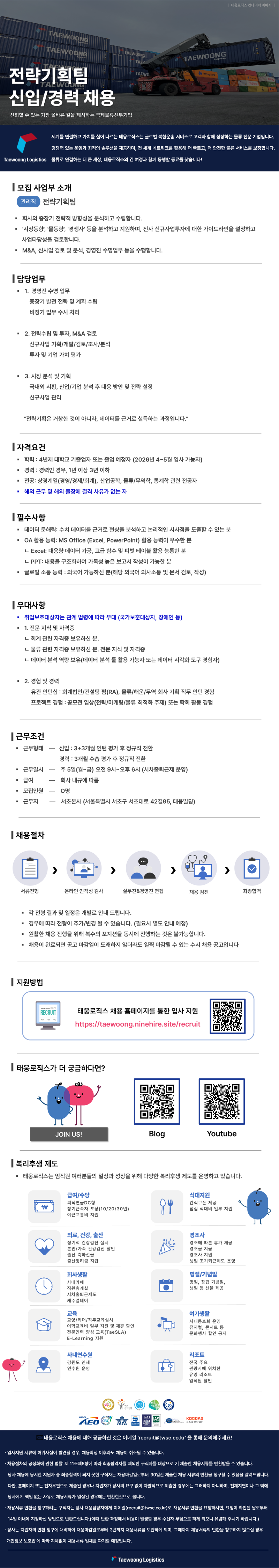 · 학력 : 4년제 대학교 기졸업자 또는 졸업 예정자 (2026년 4~5월 입사 가능자)
