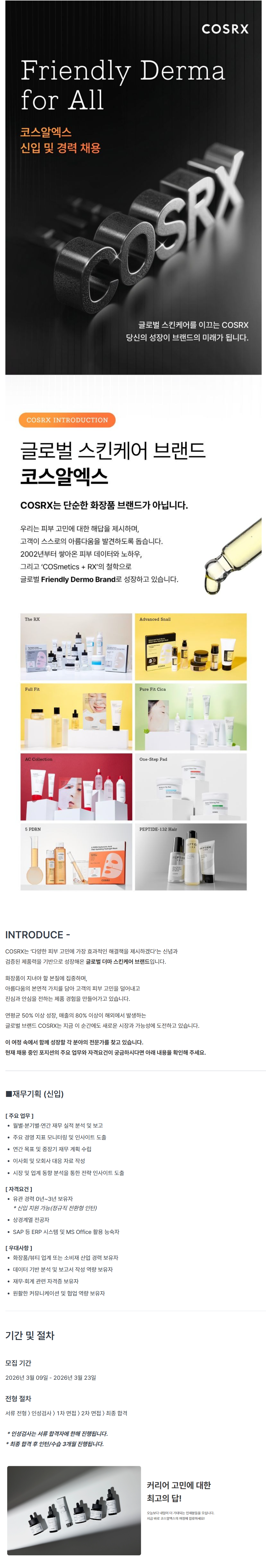 [코스알엑스] [26년 3월](신입) 재무기획 채용
