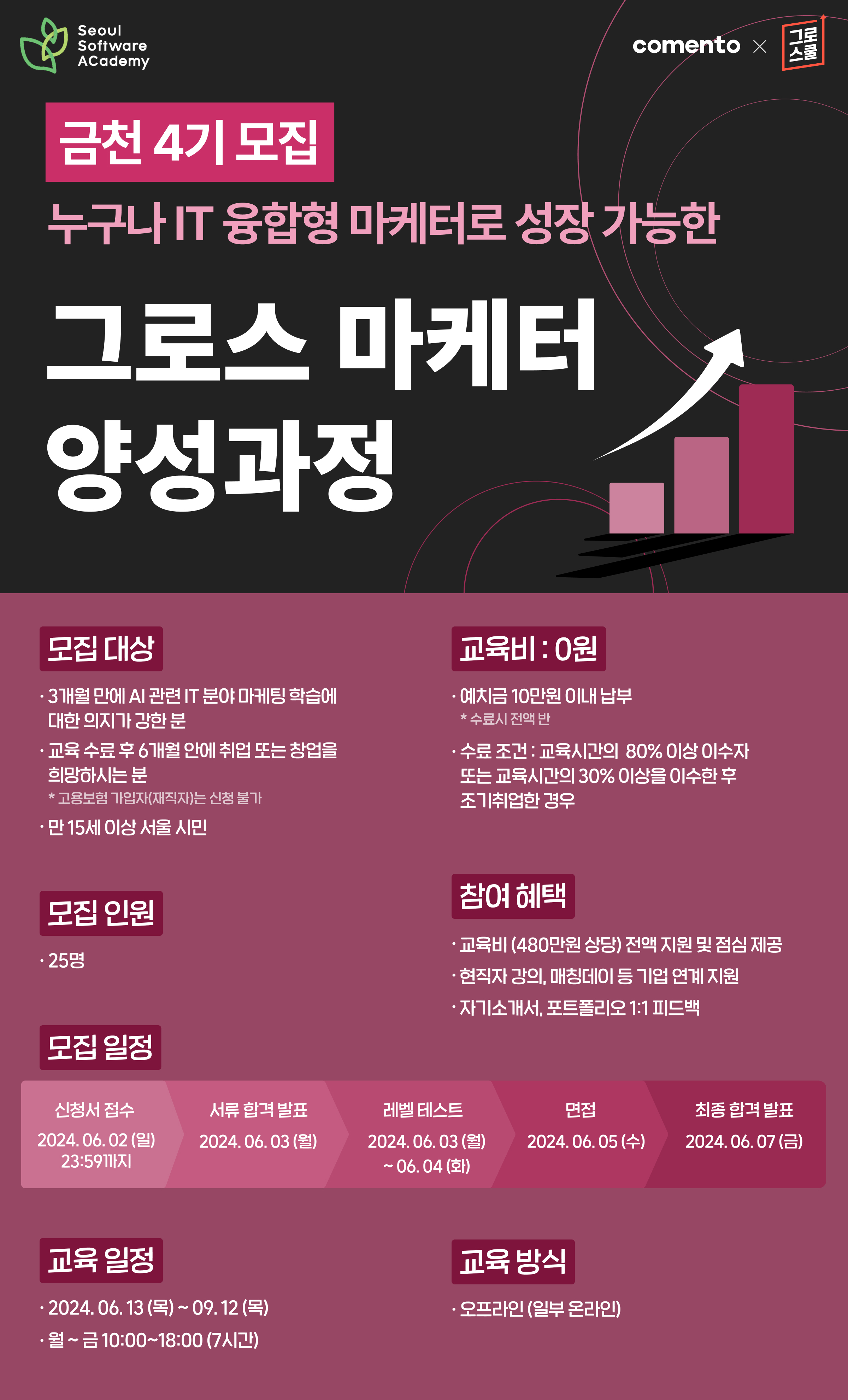 <서울시 새싹 금천캠퍼스 그로스마케팅 과정 교육생 모집(구로디지털단지역/독산역/가산디지털단지역 인근)>