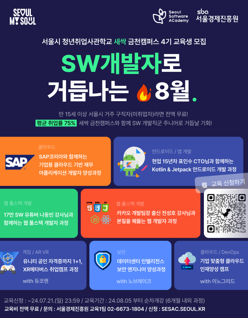 <서울시 청년취업사관학교 새싹 금천캠퍼스 SW 4기 교육생 모집>